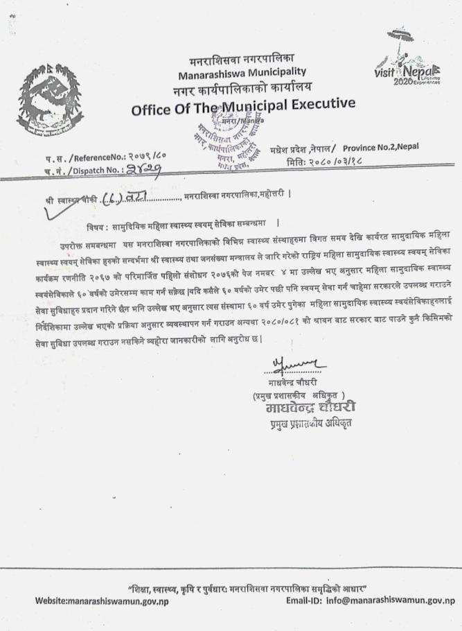सामुदायिक महिला स्वास्थय स्वयम् सेविका सम्बन्धमा ।
